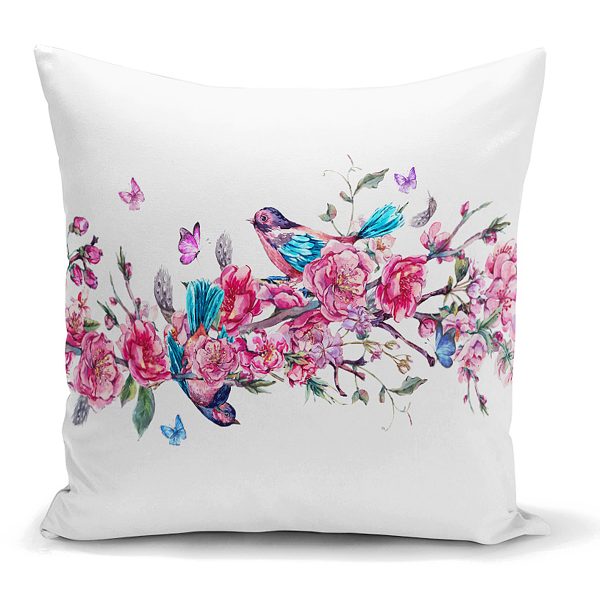 Şarmaşık Gül Desenli Kuş Motifli Dijital Baskılı Yastık Kırlent Kılıfı