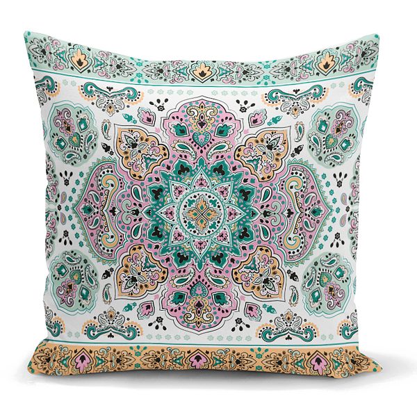 Mint Yeşili Çini Motifli Dekoratif Yastık Kırlent Kılıfı