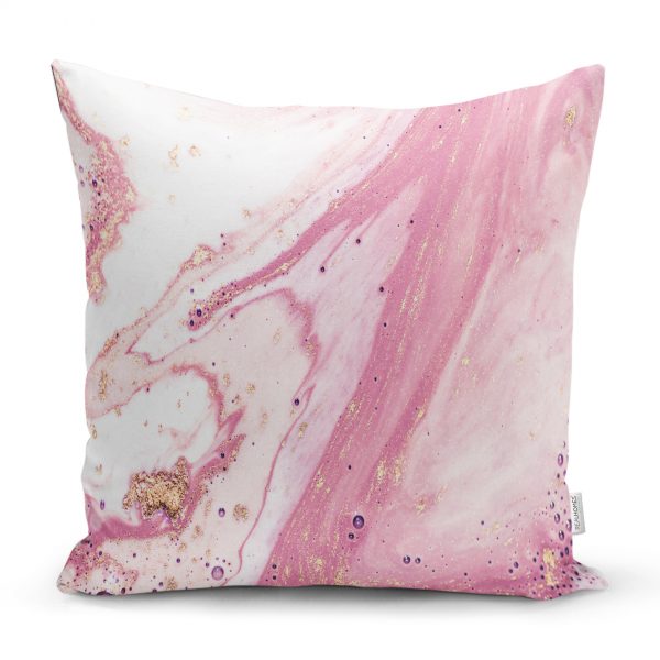 Pembe Beyaz Mermer Desenli Dijital Baskılı Yastık Kırlent Kılıfı