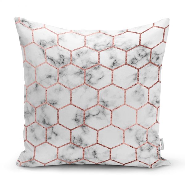 Mermer ve Petek Desenli Dijital Baskılı Yastık Kırlent Kılıfı