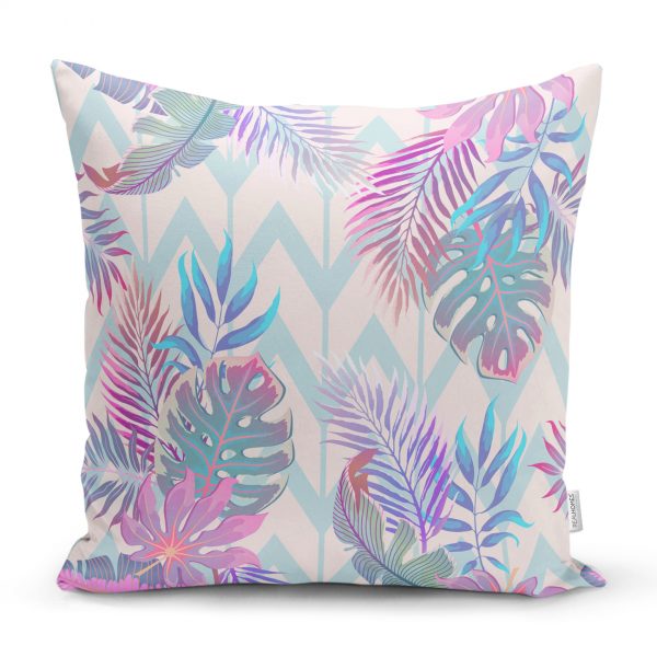 Pudra Zeminli Geometrik Palmiye Yaprakları Modern Yastık Kırlent Kılıfı