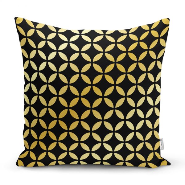 Siyah Zeminde Gold Geometrik Desenli Dekoratif Yastık Kırlent Kılıfı