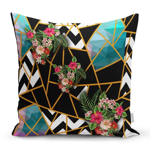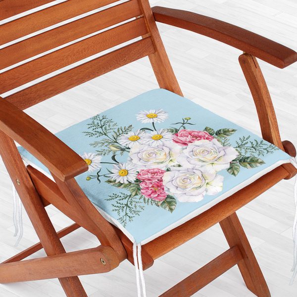 Çiçek Desenli Dekorati Kare Sandalye Minderi 40x40cm Fermuarlı