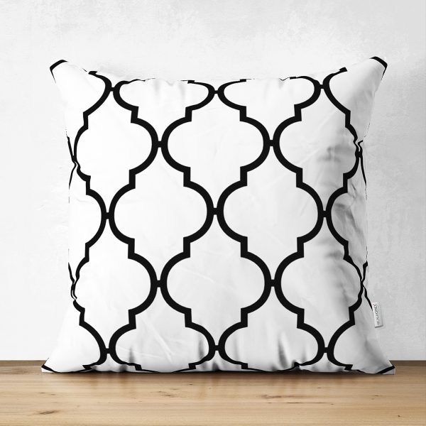 Çift Taraflı Siyah Beyaz Ogea Desenli Dekoratif Süet Yastık Kırlent Kılıfı
