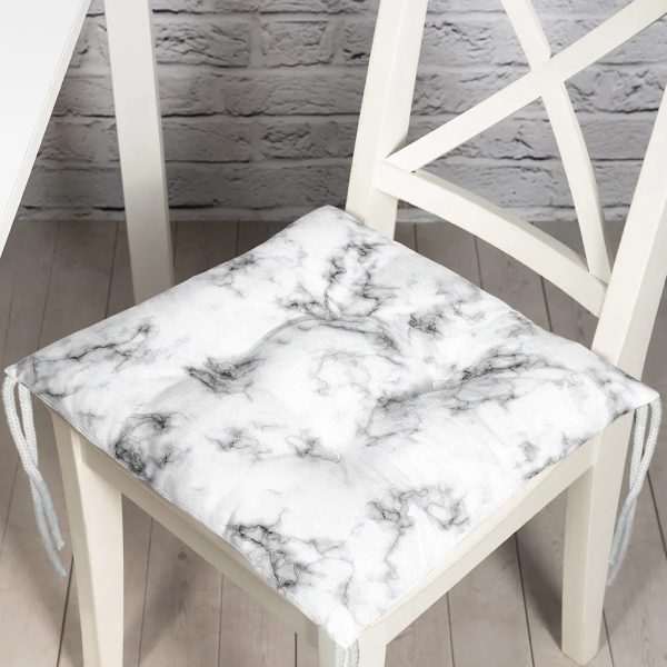 Açık Mermer Zeminli Dijital Baskılı Pofuduk Sandalye Minderi