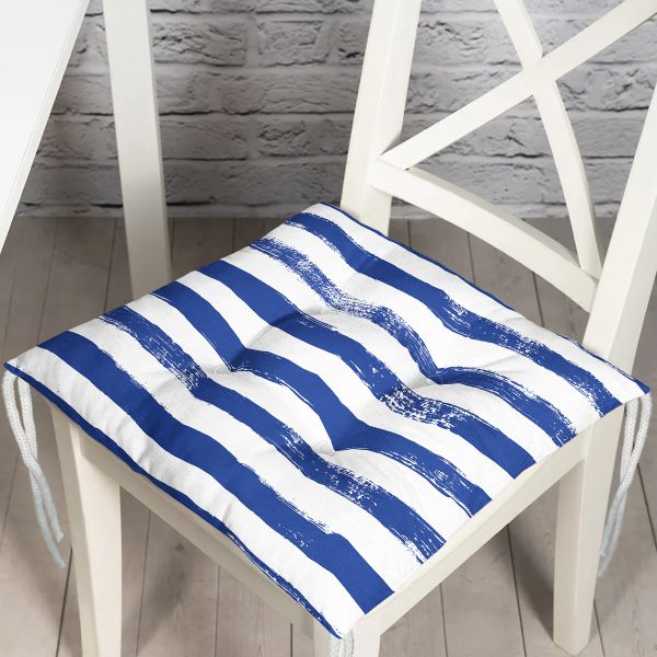 Lacivert Çizgili Motifli Dekoratif Modern Pofuduk Sandalye Minderi