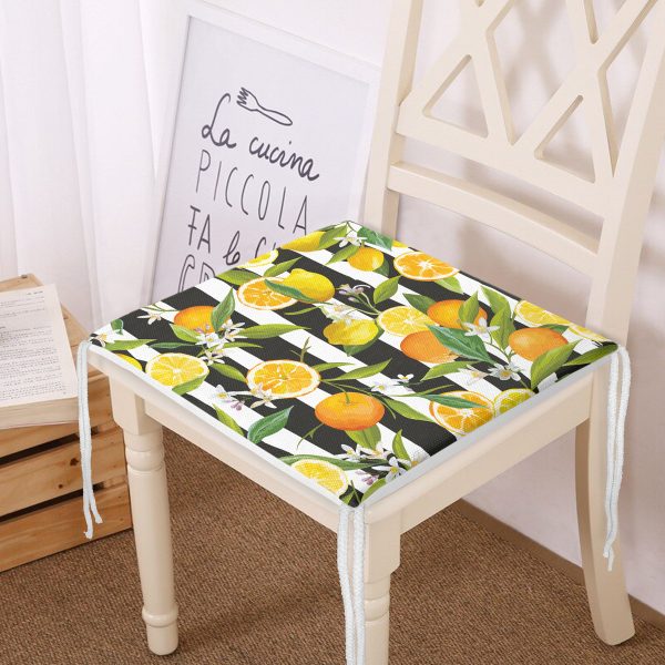 Çizgili Siyah Zeminli Limon Desenli Dekoratif Fermuarlı Sandalye Minderi