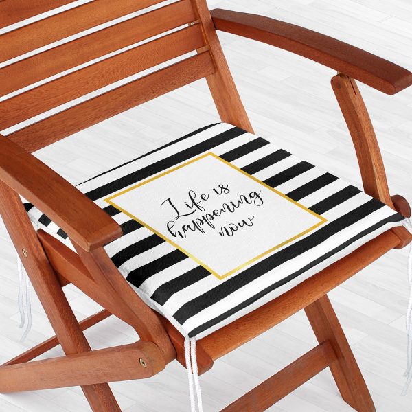 Siyah Beyaz Gold Yazılı Modern Dekoratif Fermuarlı Sandalye Minderi