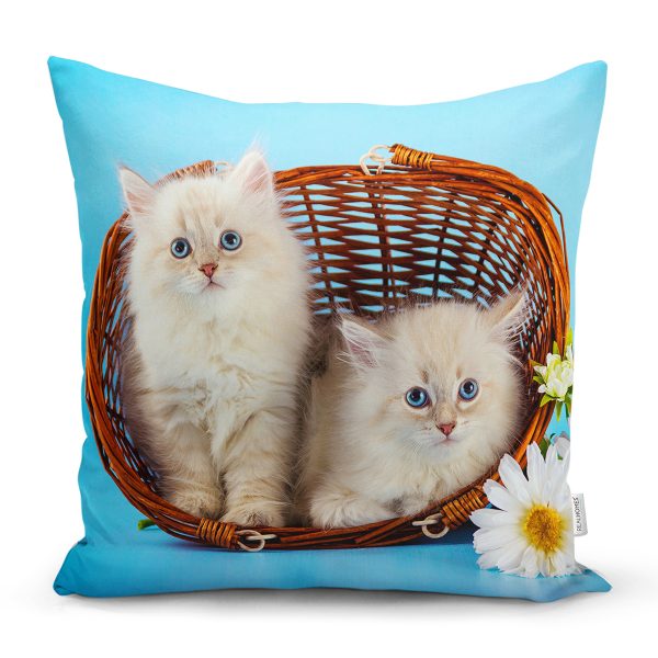 Kedili Dijital Baskılı Dekoratif Yastık Kırlent Kılıfı