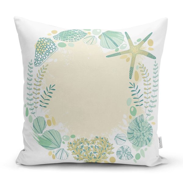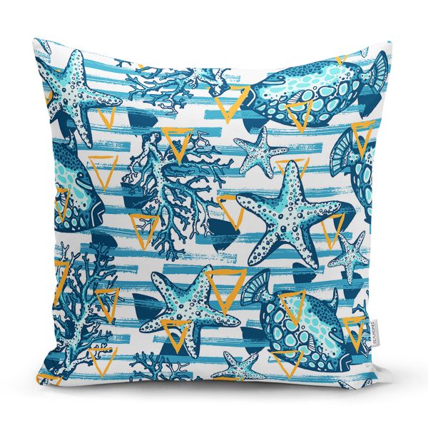Beyaz Zeminli Deniz Yıldızı Desenli Dijital Baskılı Modern Yastık Kırlent Kılıfı