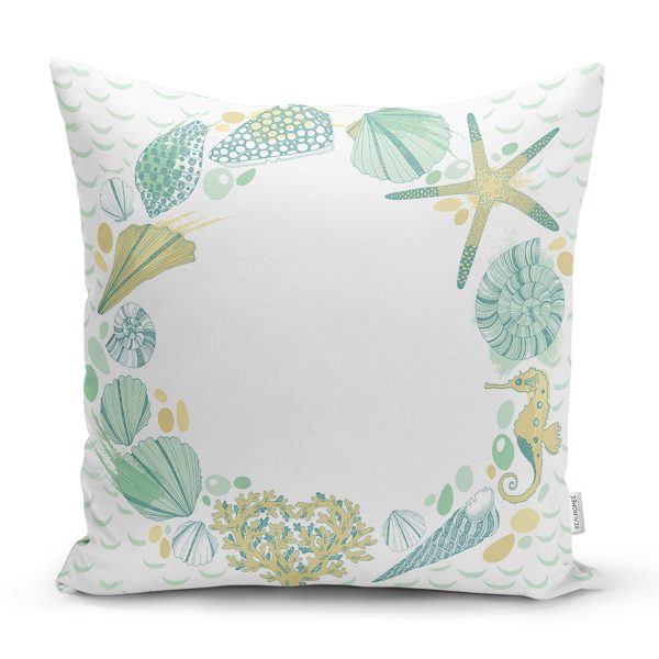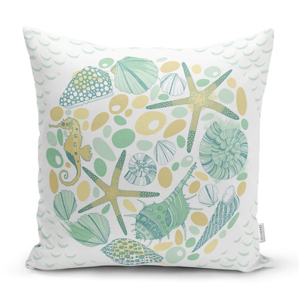 Beyaz Zeminli Deniz Atı Desenli Dijital Baskılı Modern Yastık Kırlent Kılıfı