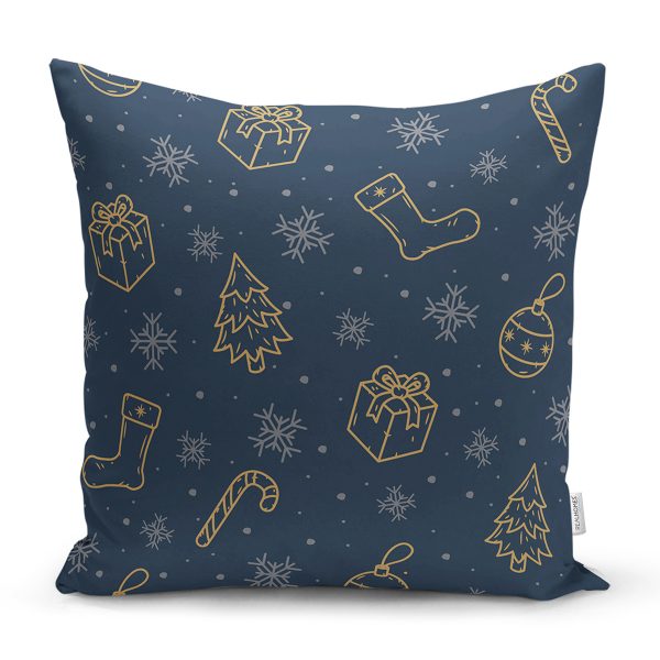 Renkli Zemin Üzerinde Gold Detaylı Yılbaşı Çorabı Desenli Yastık Kırlent Kılıfı