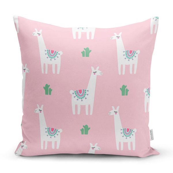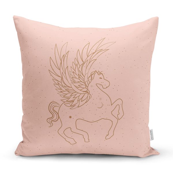 Pastel Zemin Üzerinde Unicorn Desenli Dijital Baskılı Modern Yastık Kırlent Kılıfı
