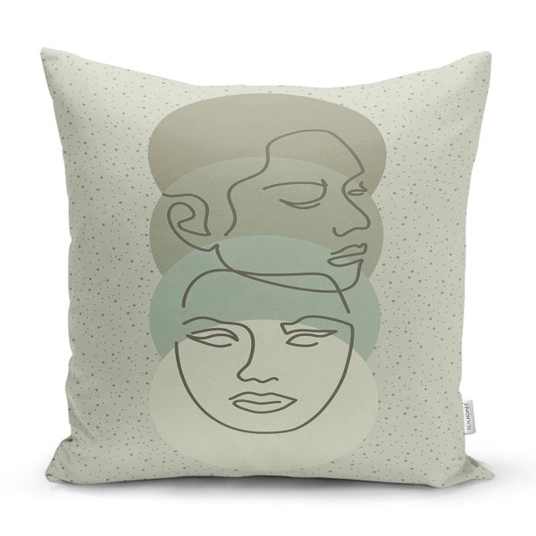 Renkli Zemin Üzerinde Onedraw Çizimli Bayan Silüeti Yastık Kırlent Kılıfı