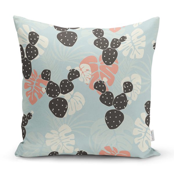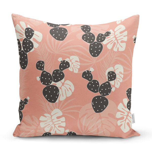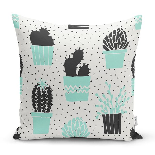 Beyaz Zemin Üzerinde Siyah Puantiyeli Kaktüs Desenli Yastık Kırlent Kılıfı
