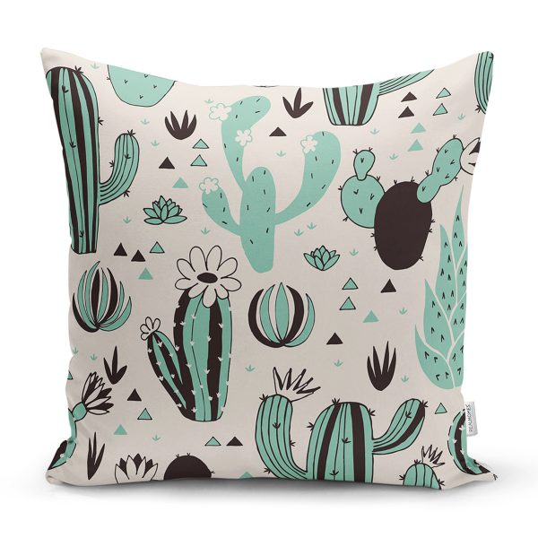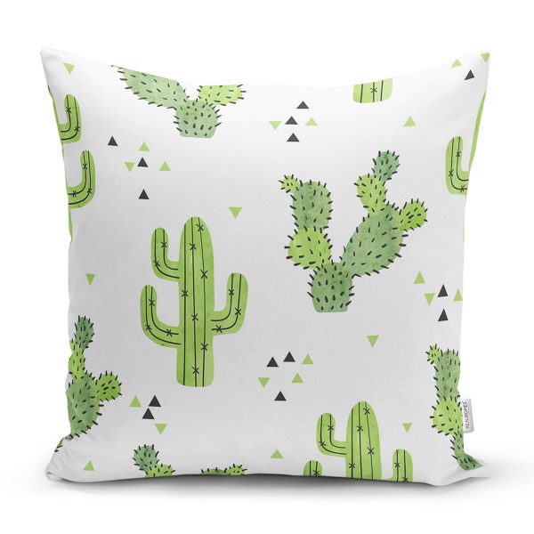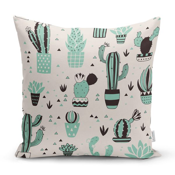 Beyaz Zeminli Renkli Kaktüs Desenli Dijital Baskılı Modern Yastık Kırlent Kılıfı