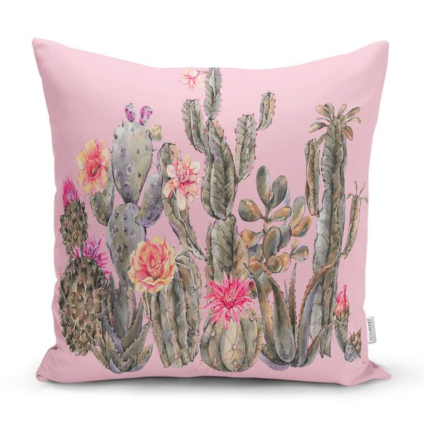 Renkli Zemin Üzerinde Kaktüs Desenli Dijital Baskılı Modern Yastık Kırlent Kılıfı