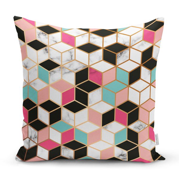 Renkli Geometrik Desenli Mermer Motifli Dijital Baskılı Modern Yastık Kılıfı