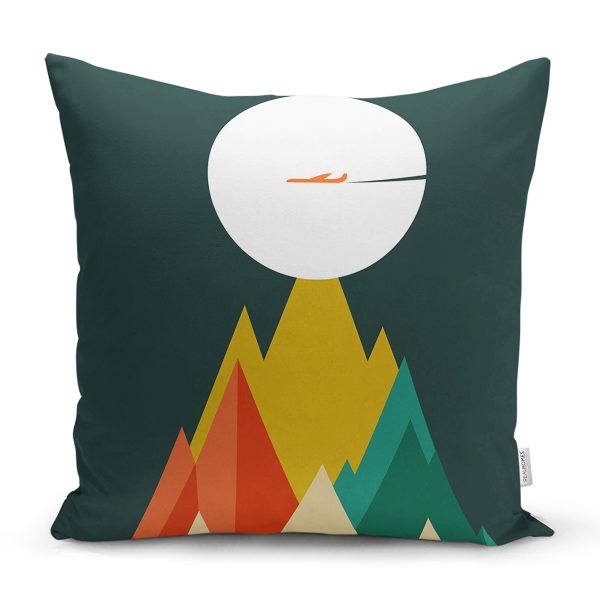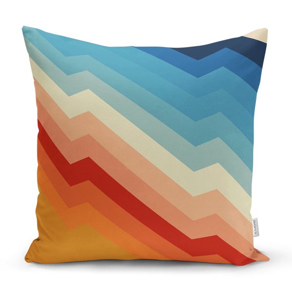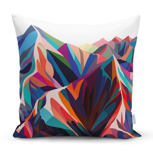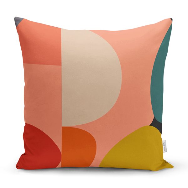 Renkli Zeminli Geometrik Desenli Dijital Baskılı Modern Yastık Kırlent Kılıfı