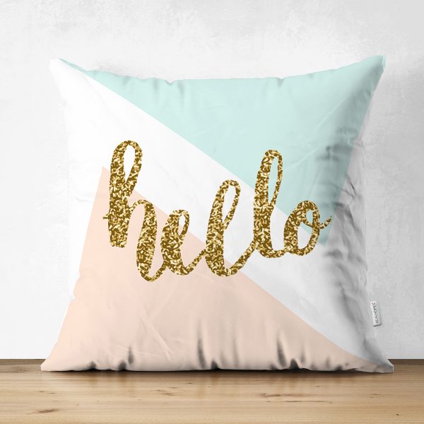 Çift Taraflı Gold Hello Yazılı Modern Motifler Dijital Baskılı Modern Süet Yastık Kırlent Kılıfı