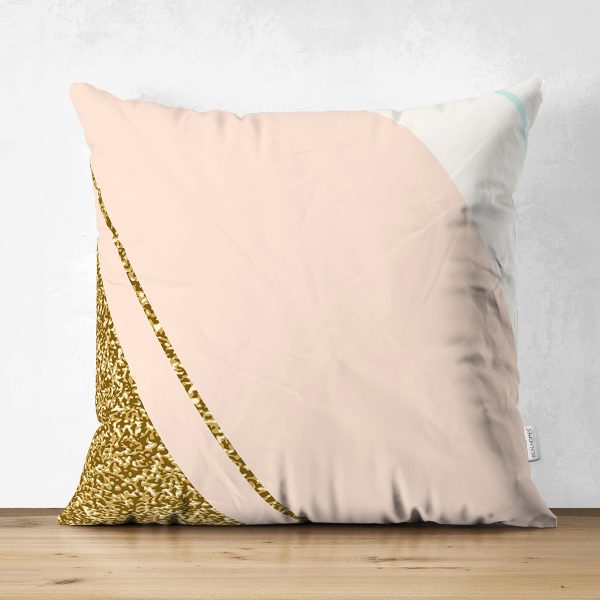 Çift Taraflı Pembe Krem Gold Motifli Dijital Baskılı Modern Süet Yastık Kırlent Kılıfı
