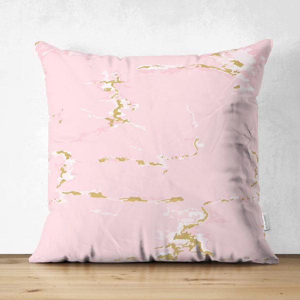 Çift Taraflı Pembe Zemin Mermer Motifli Dijital Baskılı Modern Süet Yastık Kırlent Kılıfı