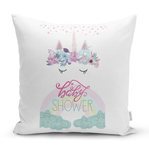 Beyaz Zeminde Baby Shower Özel Tasarım Çocuk Odası Yastık Kırlent Kılıfı
