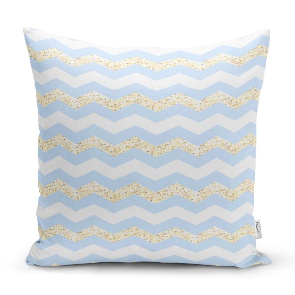 Mavi Altın Varaklı Çizgi Motifli Çocuk Odası Yastık Kırlent Kılıfı