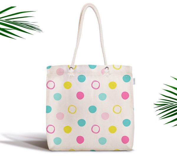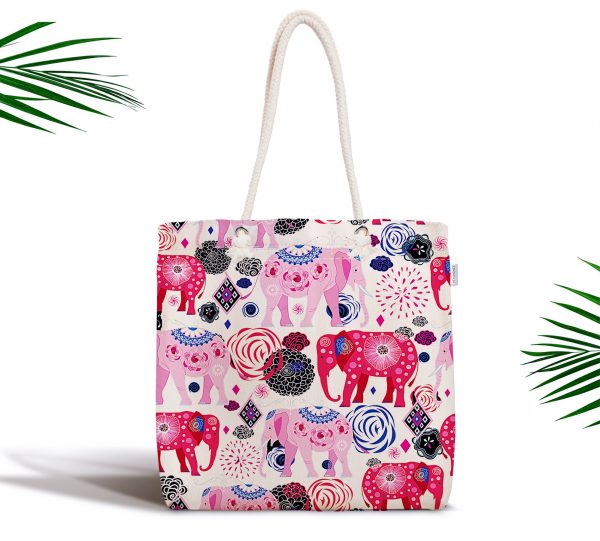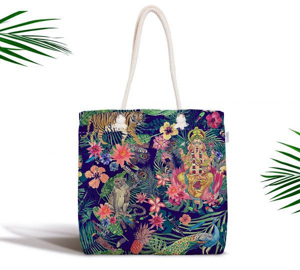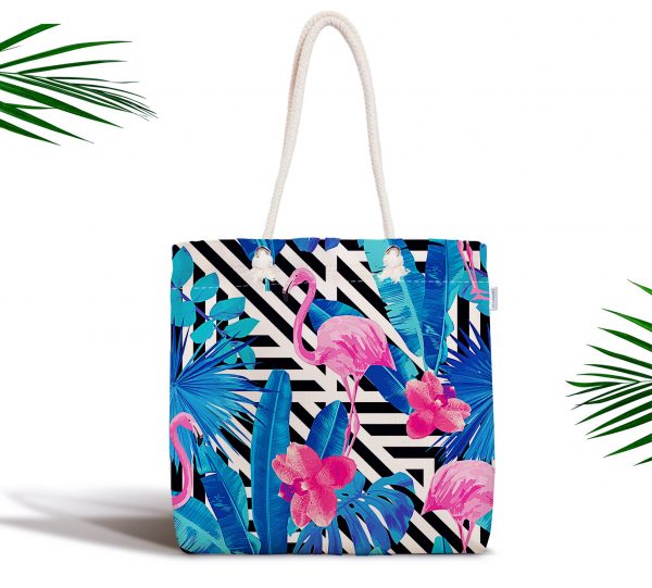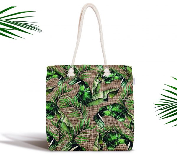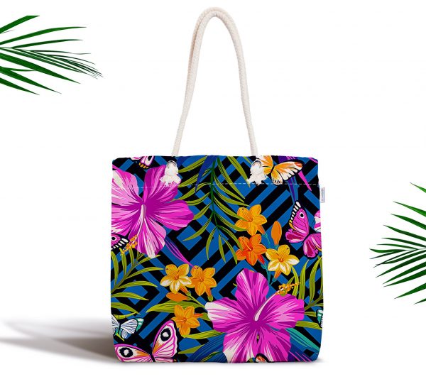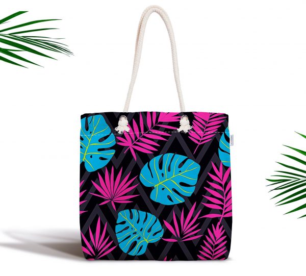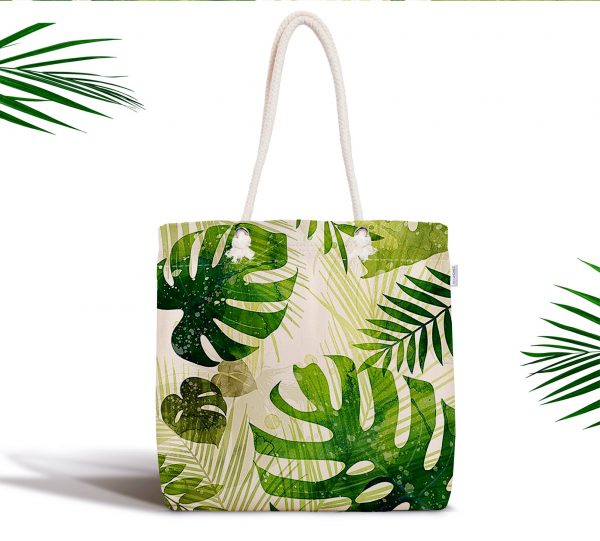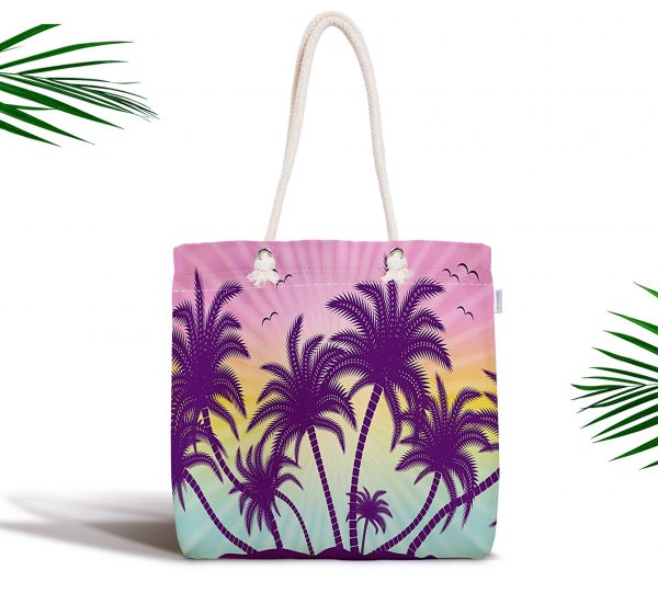 Renkli Zeminde Palmiye Motifli Dijital Baskılı Modern Plaj Çantası
