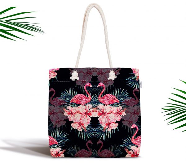 Flamingo Devetabanı Çizimli Özel Tasarım Dijital Baskılı Fermuarlı Kumaş Çanta