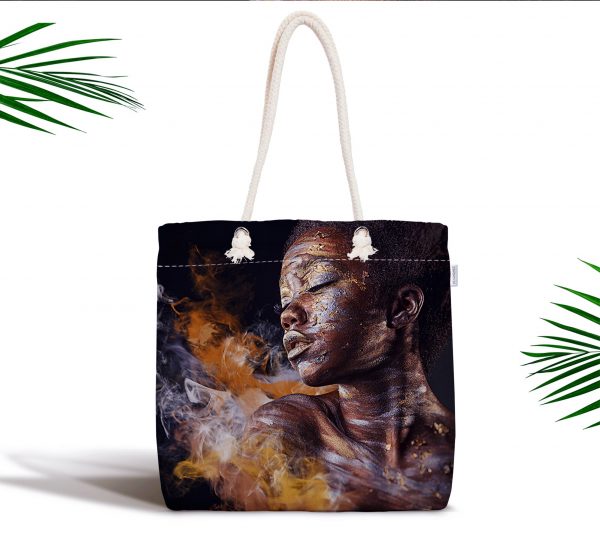 Afrikan Yağlı Boya Çizimli 3D Fermuarlı Modern Kumaş Çanta