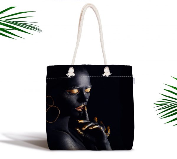 Siyah Zeminde Amazon Zebra Tasarımlı Dijital Baskılı Kumaş Çanta