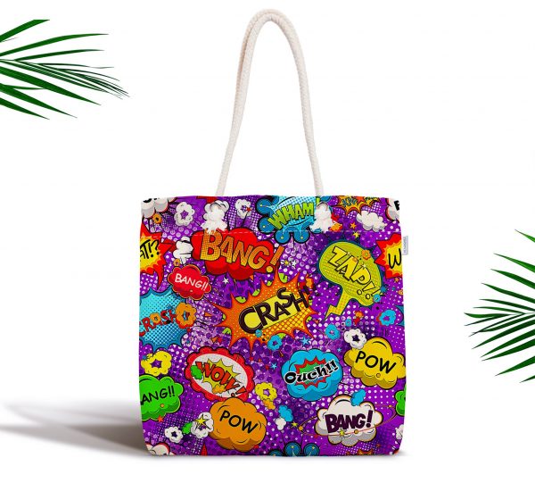 Mor Zeminli Pop Art Özel Tasarım Dijital Baskılı Fermuarlı Kumaş Çanta