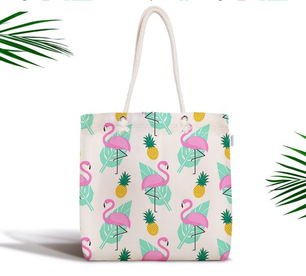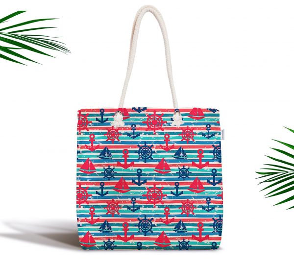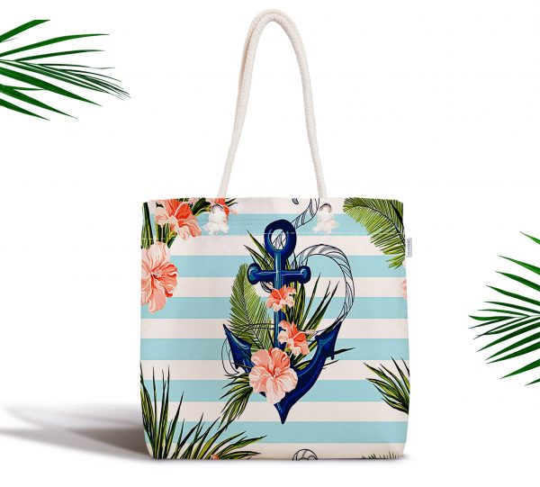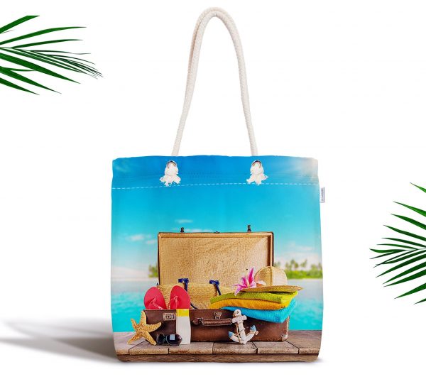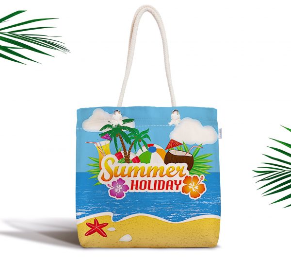 Özel Tasarımlı Tatil Temalı Fermuarlı Plaj Çantası