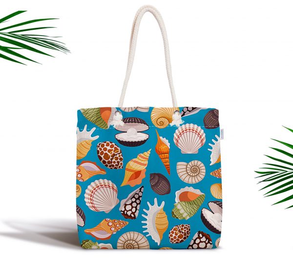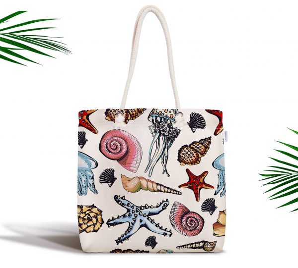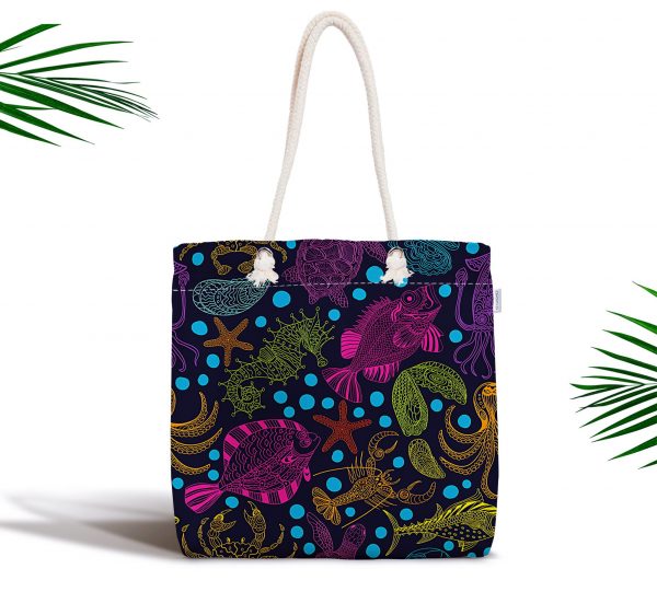 Deniz Yaşamı Özel Tasarımlı Dijital Baskılı Fermuarlı Plaj Çantası
