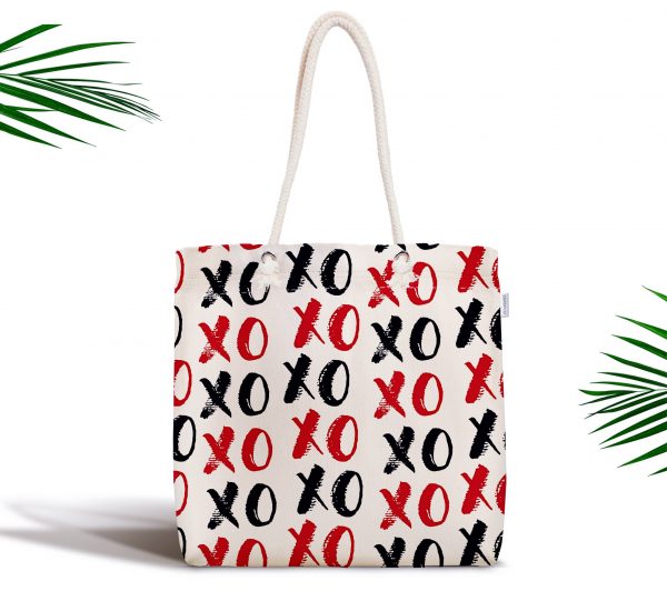 XO Harf Tasarımlı Dijital Baskılı Fermuarlı Kumaş Çanta