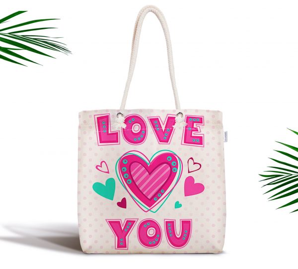 Puanlı Love You Baskıılı Dijital Baskılı Fermuarlı Kumaş Çanta