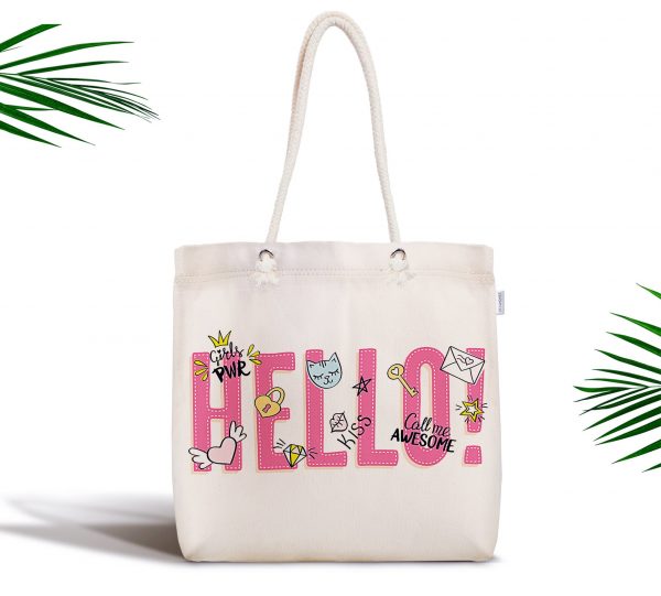 Özel Tasarım Hello Yazı Desenli Dijital Baskılı Fermuarlı Kumaş Çanta