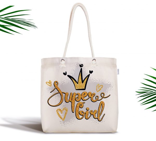 Super Gırl Yazı Desenli Dijital Baskılı Fermuarlı Kumaş Çanta