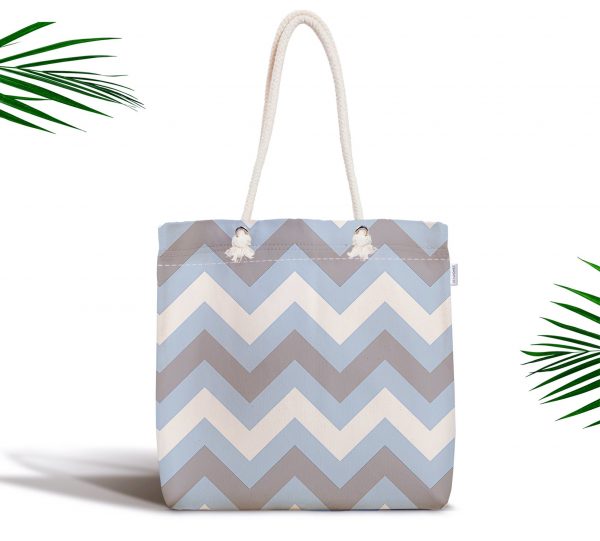 Mavi Gri Zigzag Desenli Dijital Baskılı Fermuarlı Kumaş Çanta