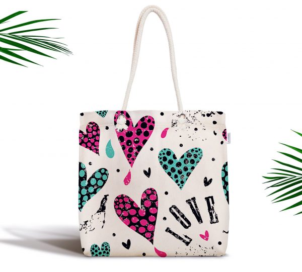 Kalpli Love Desenli Fermuarlı Modern Kumaş Çanta