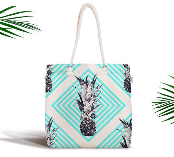 Zigzag Zeminde Ananaslar Fermuarlı Modern Kumaş Çanta