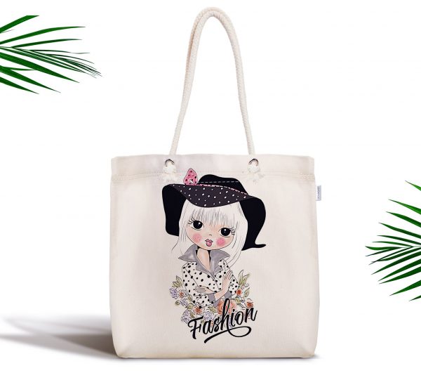 Fashion Girl Dijital Baskılı Fermuarlı Kumaş Çanta