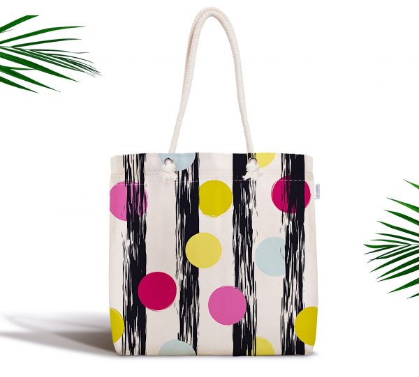 Dikey Temalı Gökkuşağı Puanlı Desenli Dijital Baskılı Fermuarlı Kumaş Çanta