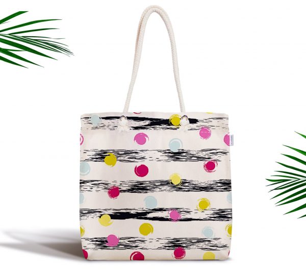 Renkli Puantiyeli Dijital Baskılı Fermuarlı Kumaş Çanta