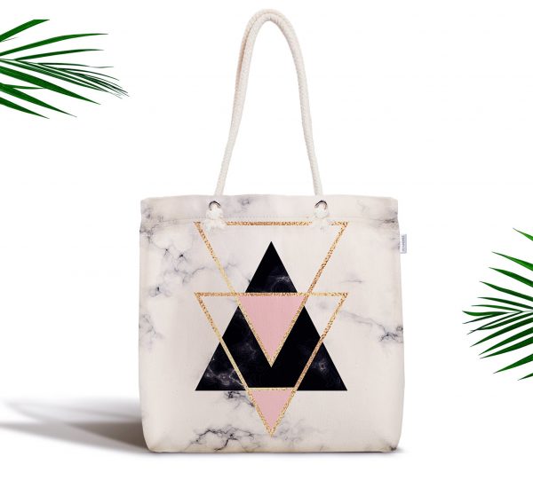 Yaldız Renk Ters Üçgen Desenli Fermuarlı Modern Kumaş Çanta