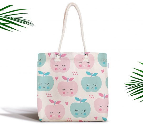 Renkli Elmalar Dijital Baskılı Fermuarlı Kumaş Çanta