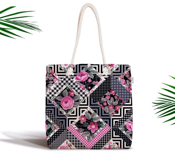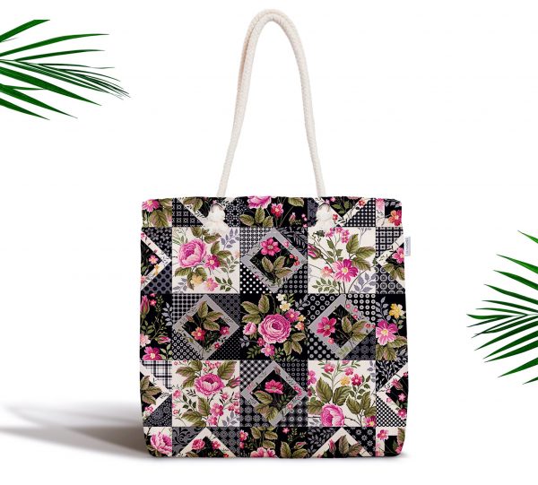 Spring Bouquet Temalı Modern Dijital Baskılı Fermuarlı Kumaş Çanta