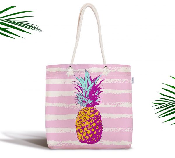 Canlı Renkli Ananas Motifli Dijital Baskılı Fermuarlı Kumaş Çanta