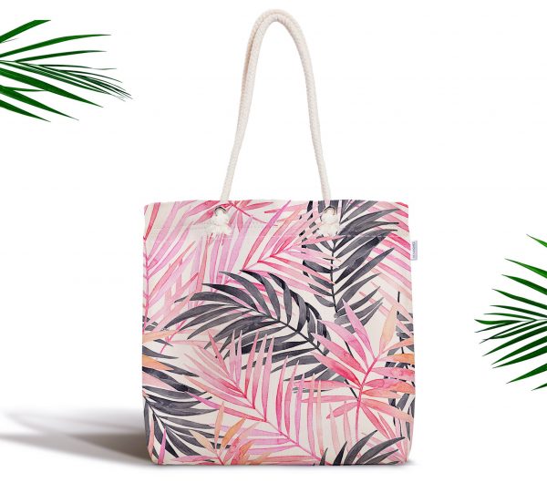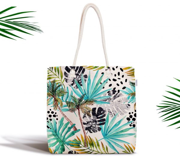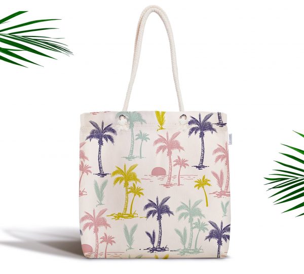 Palmiye Esintisi Temalı Dijital Baskılı Fermuarlı Kumaş Çanta